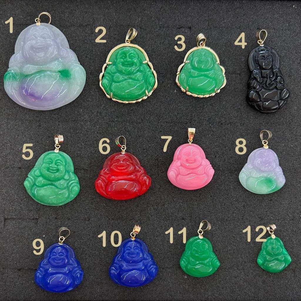 14k Gold and Jade Buddha Pendant, Big Buddha Pendant, Small Buddha Charm, Jade Necklace, Pink Buddha, Red, Green, Blue, White Buddah Charm