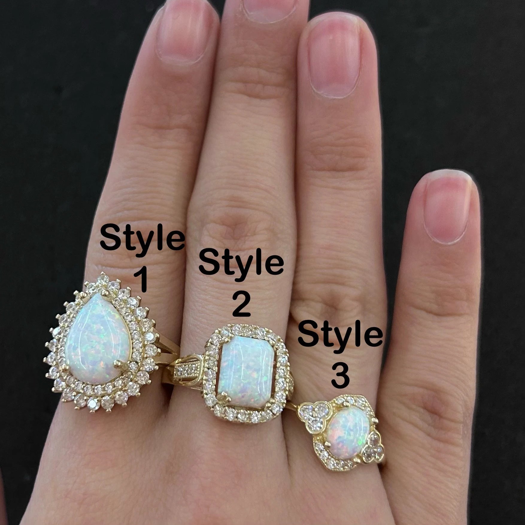 14k Gold Opal Stone Ring, Opal Birthstone Ring, 14k Gold Women's Ring, CZ Stone Ring, Oval Cut, Cushion Shape, Teardrop Pear Shape, Square