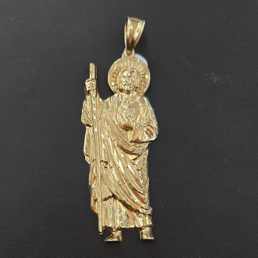 14k Gold Saint Jude Pendant, San Judas Pendant, Gold San Judas Charm, Gold Saint Jude DIamond Cut Pendant, Religious Gold Pendants