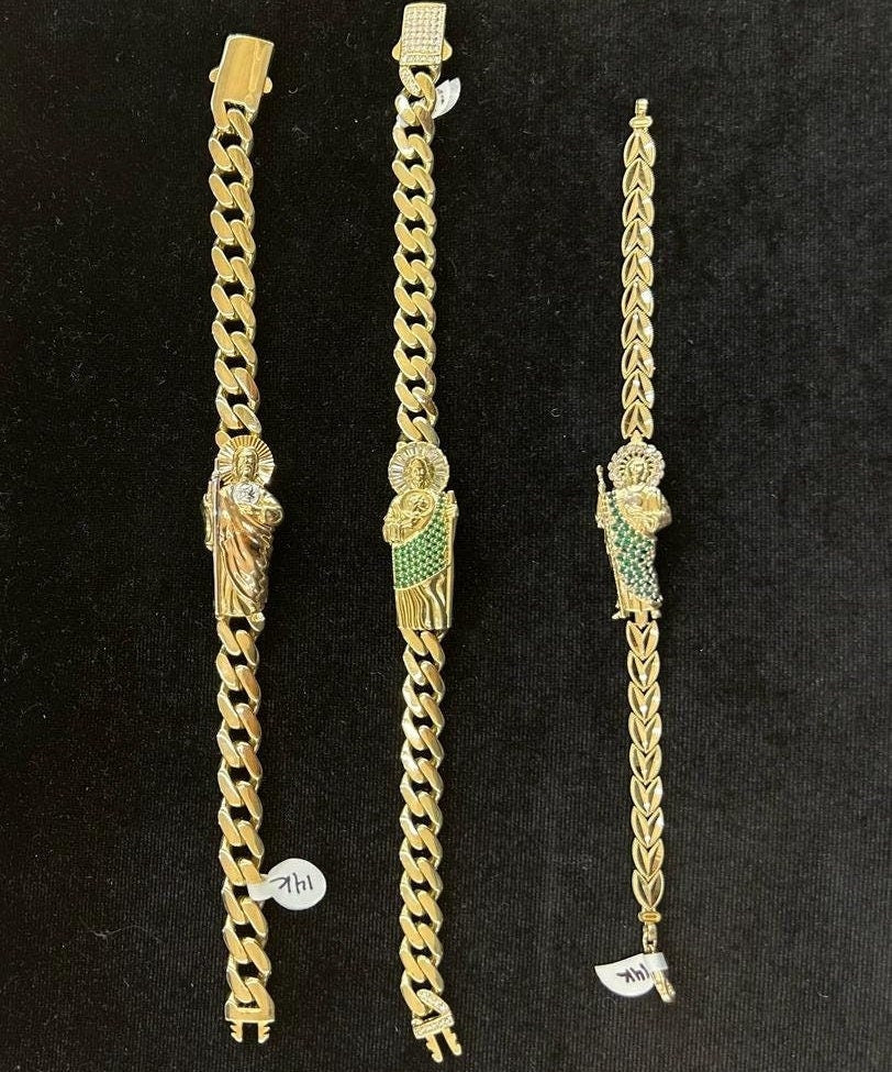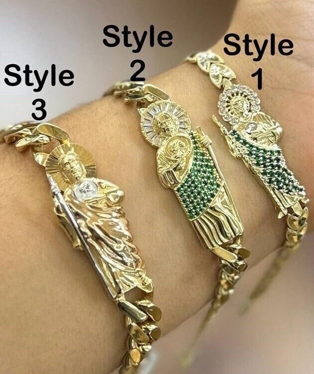 14k Gold San Judas Bracelet, 14k Saint Jude Bracelet, Women's Gold Bracelet, Men's Gold Bracelet, Unisex Gold Braclet, Monaco Style Bracelet