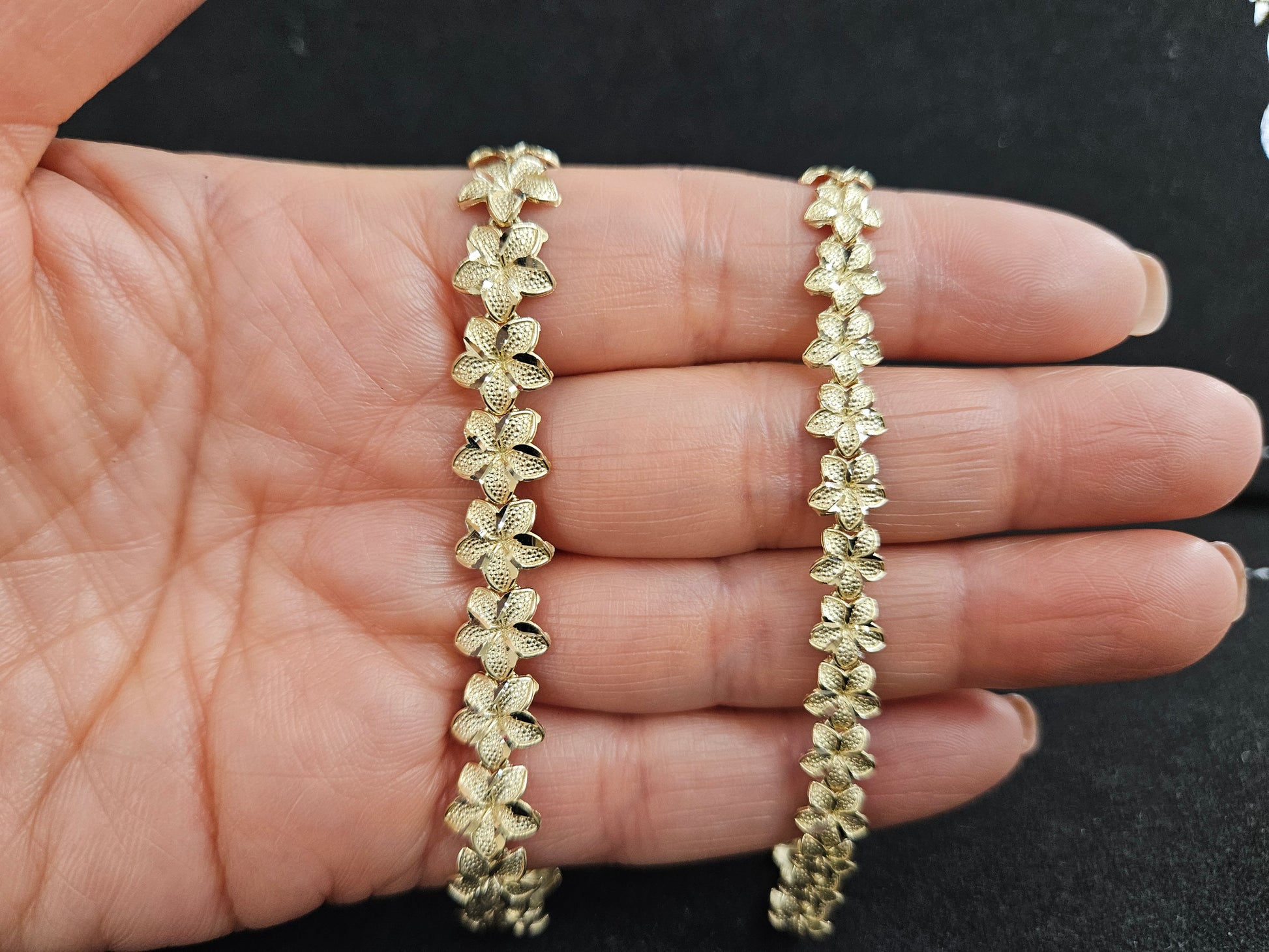 14k Gold Hibiscus Bracelet, Floral Bracelet, Gold Hibiscus flower Bracelet, Hibiscus Bracelet, Tri Color Hibiscus flower Bracelet, Bracelet, Gift Bracelet for Women